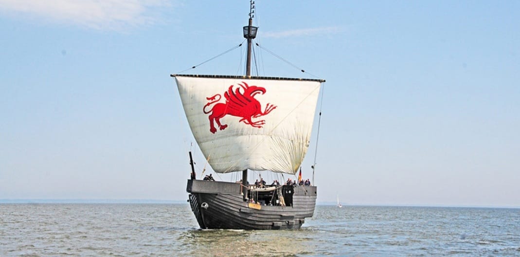 Der Heimathafen der Pommernkogge Ucra ist übrigens Ueckermünde in Vorpommern. Von dort aus startet die Ucra zu Fahrten auf das Stettiner Haff. Gebaut wurde das Schiff in rund zehn Jahren in der Stadt Torgelow.