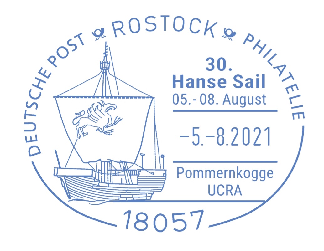 Auch die Deutsche Post ist mit einem Stand vertreten, wo es einen Sonderstempel mit der Pommernkogge UCRA gibt, dem Nachbau einer mittelalterlichen Kogge.