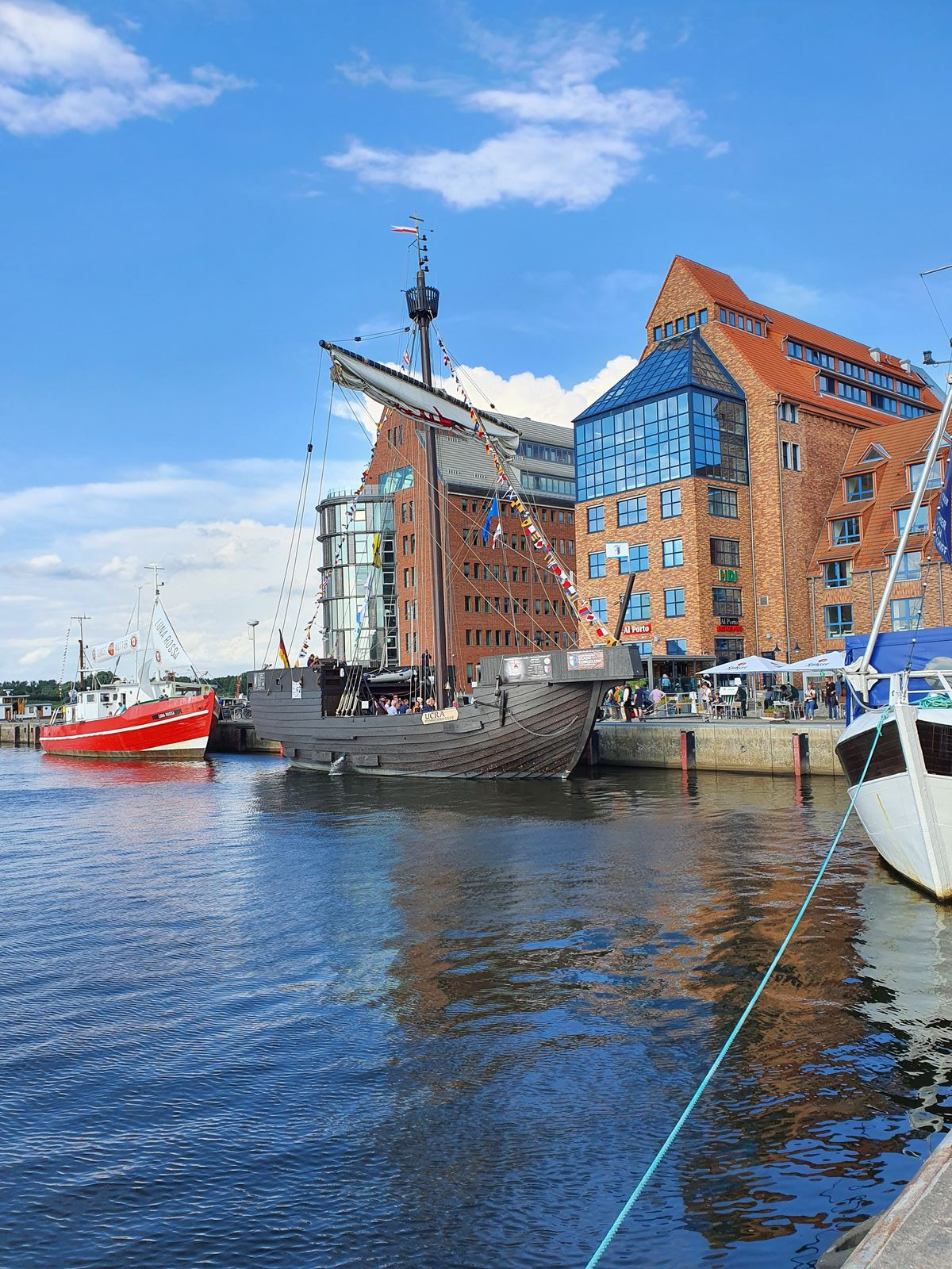 Der Heimathafen der Pommernkogge Ucra ist übrigens Ueckermünde in Vorpommern. Von dort aus startet die Ucra zu Fahrten auf das Stettiner Haff. Gebaut wurde das Schiff in rund zehn Jahren in der Stadt Torgelow.