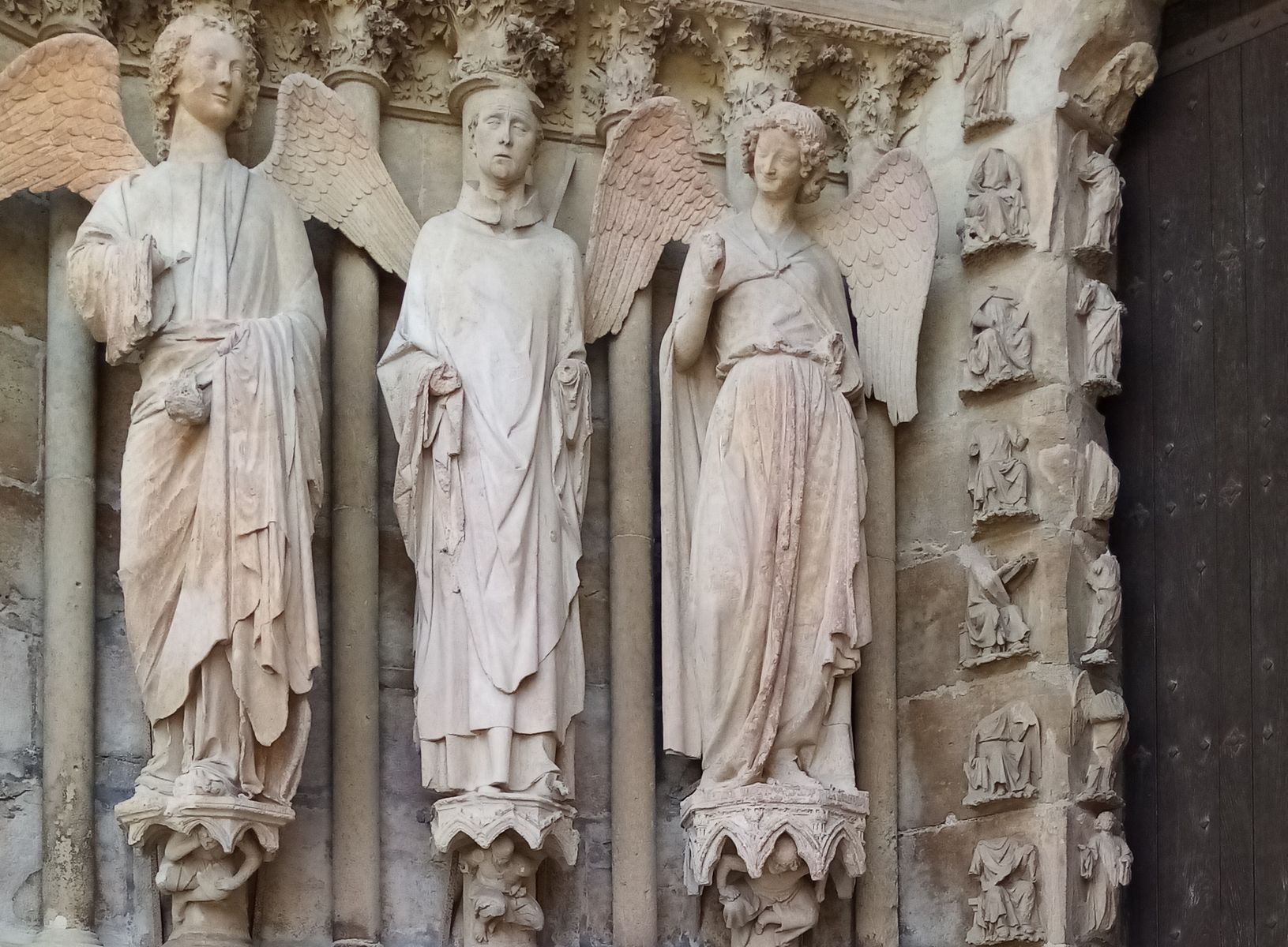 Unter anderem machten wir einen Abstecher nach Reims. Wir sahen uns die Kathedrale an und mir gelang es, den "Lächelnden Engel" zu sichten. Das ist eine der Steinfiguren im linken Portal, im 1. Weltkrieg wurde er zu einer Symbolfigur und so sieht er aus: