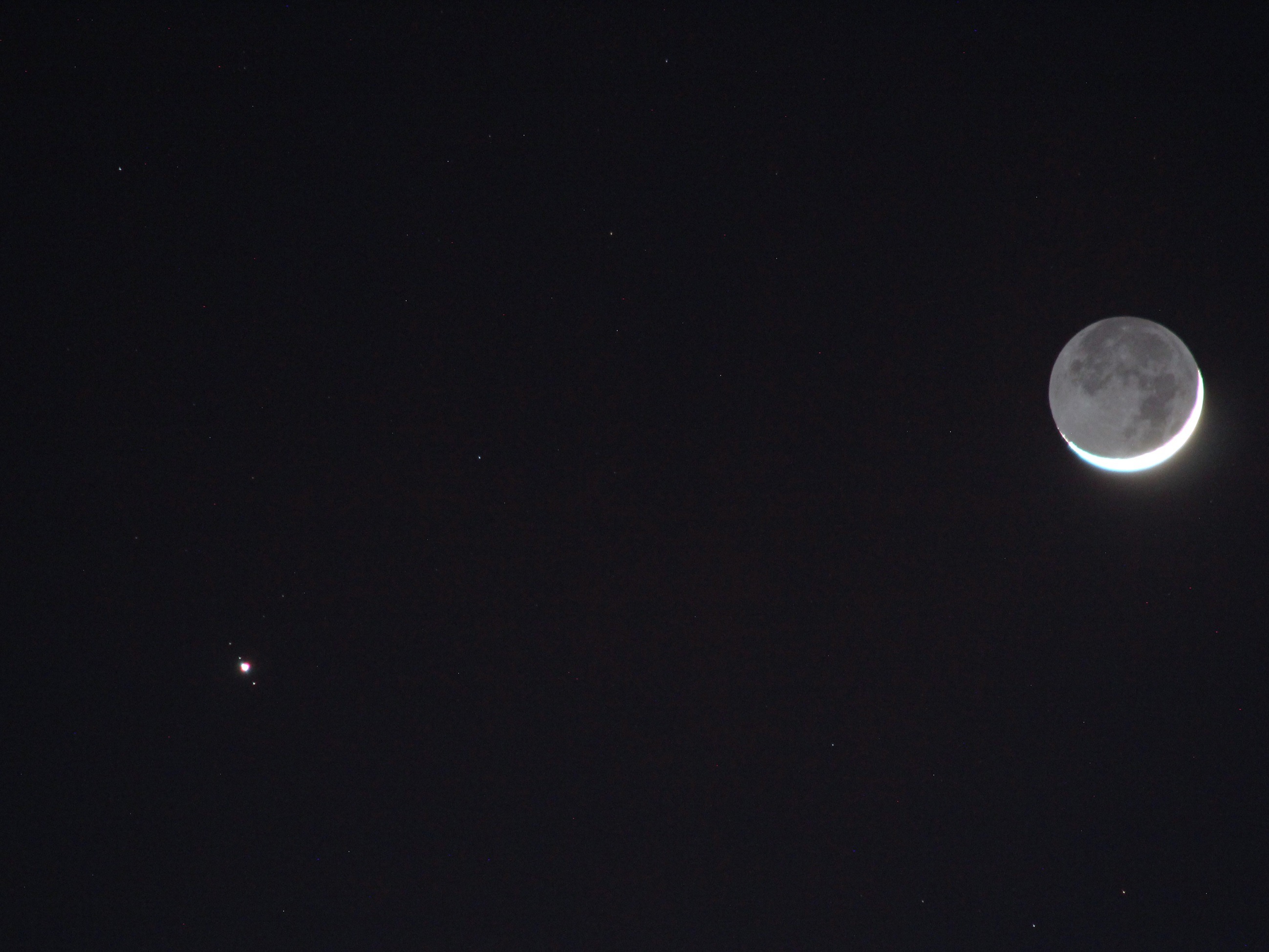 Mond, Uranus und Jupiter mit seinen Monden ganz nahe zusammen.