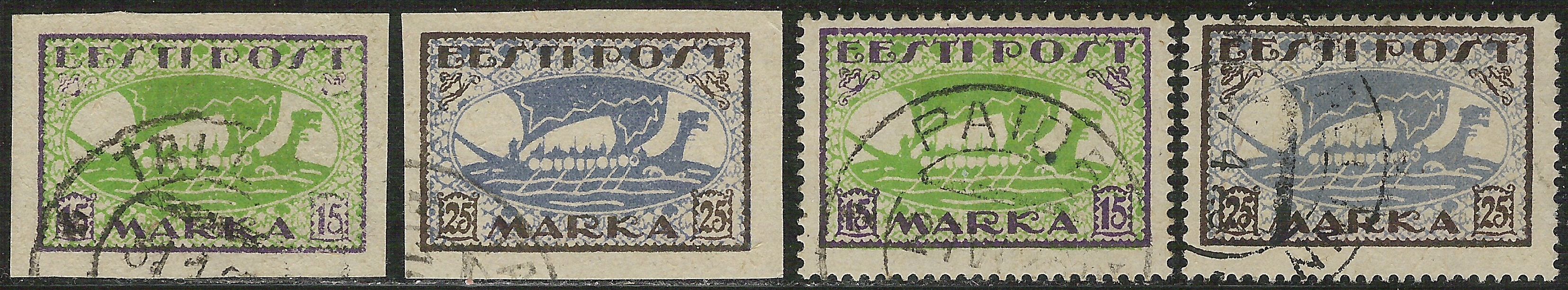Und wenn schon 1 Mark und 5 Marka gezeigt wurden dann zeige ich auch noch die beiden restlichen 15 und 25 Marka von 1920 geschnitten und von 1922 gezähnt.