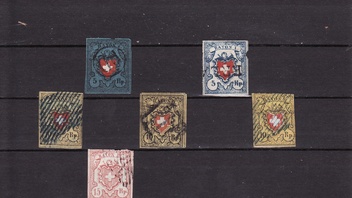Habe einige fragen zu diese Rayonmarken in meiner Schweiz Sammlung. Laut meiner Michel Schweiz Liechtenstein spezial handelt es sich um Michel 7 II, 8 II, 9 II und 12. Wie Sie sehen sind Sie nicht alle eindwandfrei, einige angeschnitten.