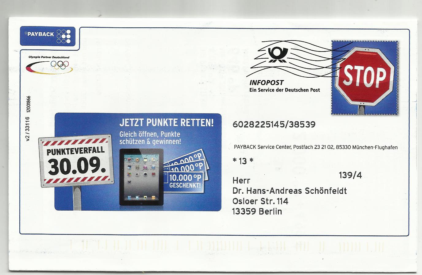 Infopost - Zahlpause bei Otto, natürlich an eine meiner Frauen zu Hause