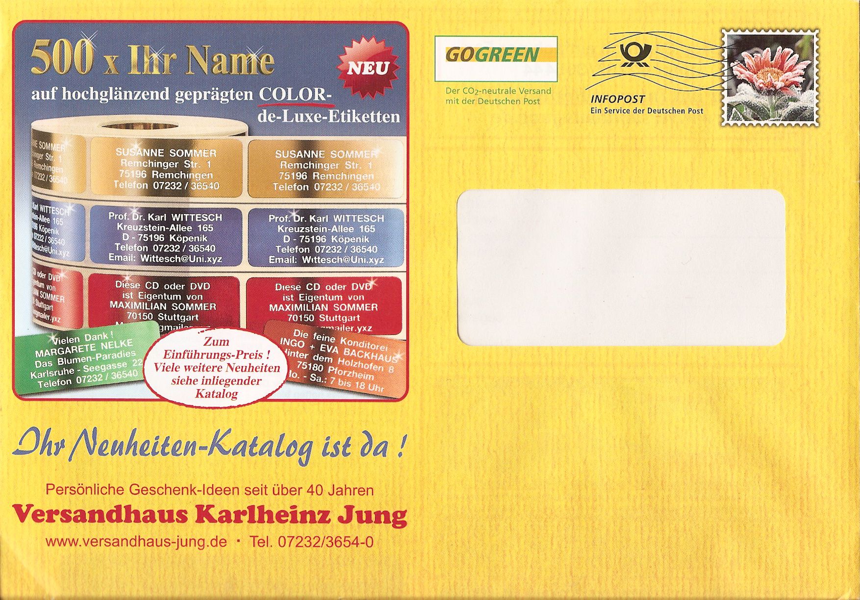 Infopost vom Versandhaus Karlheinz Jung.