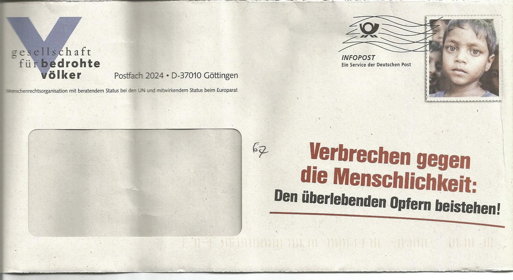 Infopost der Gesellschaft für bedrohte Völker, jüngst aus der Bedarfspost.