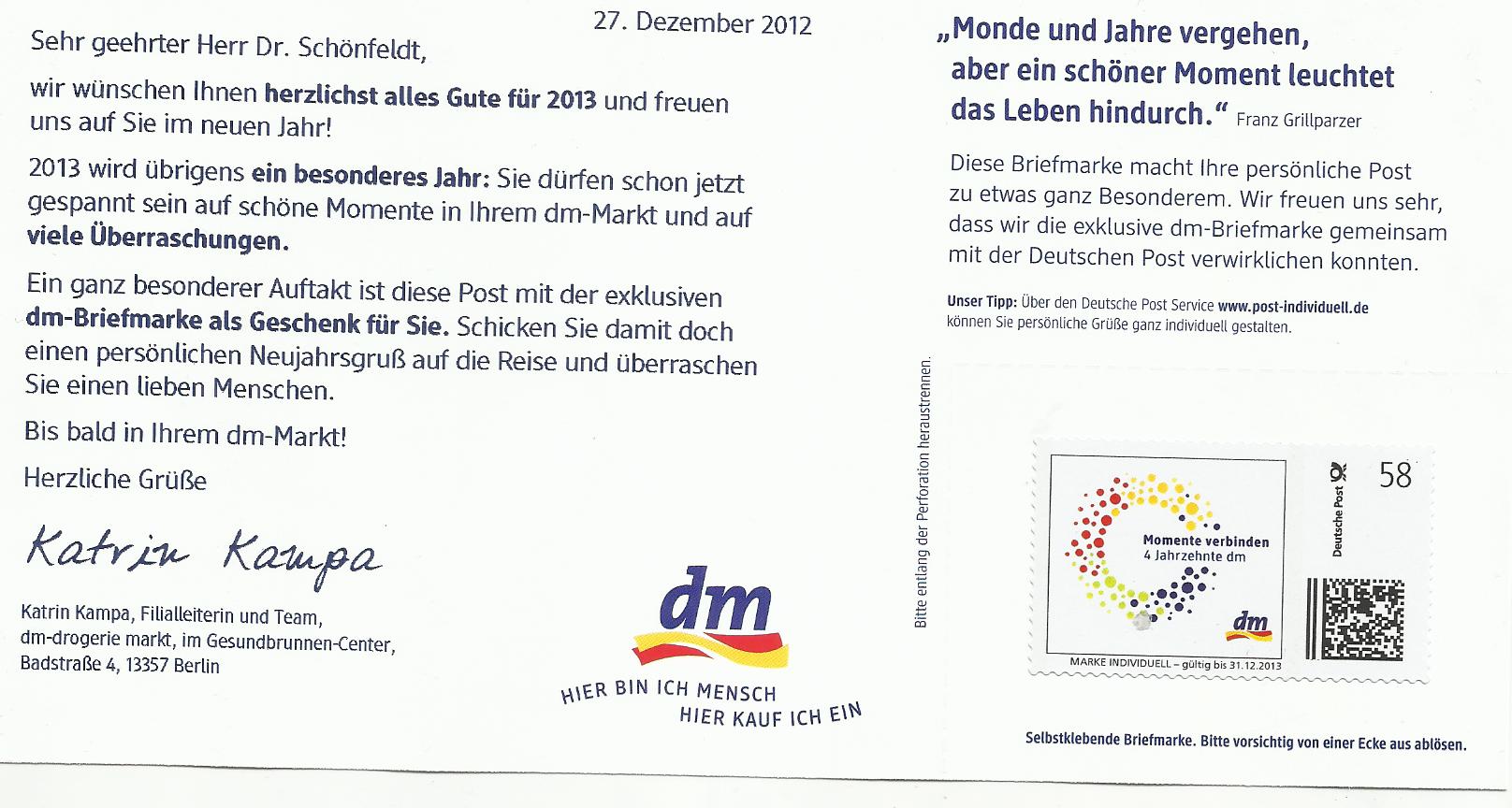 Und zu meiner Überaschung - mit einer personalisierten Briefmarke als Werbegeschenk (2. Bild rechts unten).