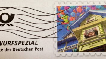 Infopost Abbildung: Haus wird durch Luftballone in die Luft gehoben, aus dem Film Oben