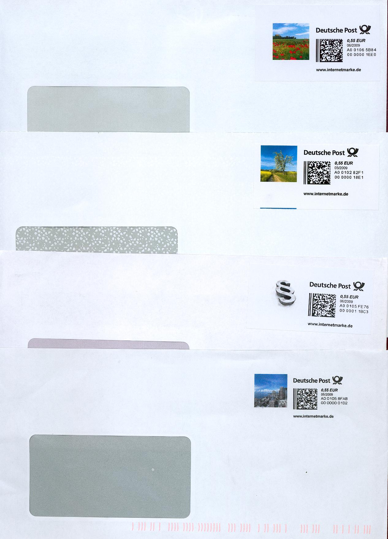 Das letzte ist allerdings ein Handyporto. Das Label wurde erst im Briefzentrum aufgeklebt, auc wenn es den Internetmarken ähnlich sieht.