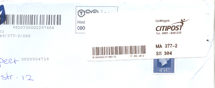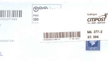 Ab & zu findet aber ein sehr eifriger P.-Mitarbeiter, daß der Brief trotzdem noch einmal durch die Stempelmaschinee gejaqgt werden muß...