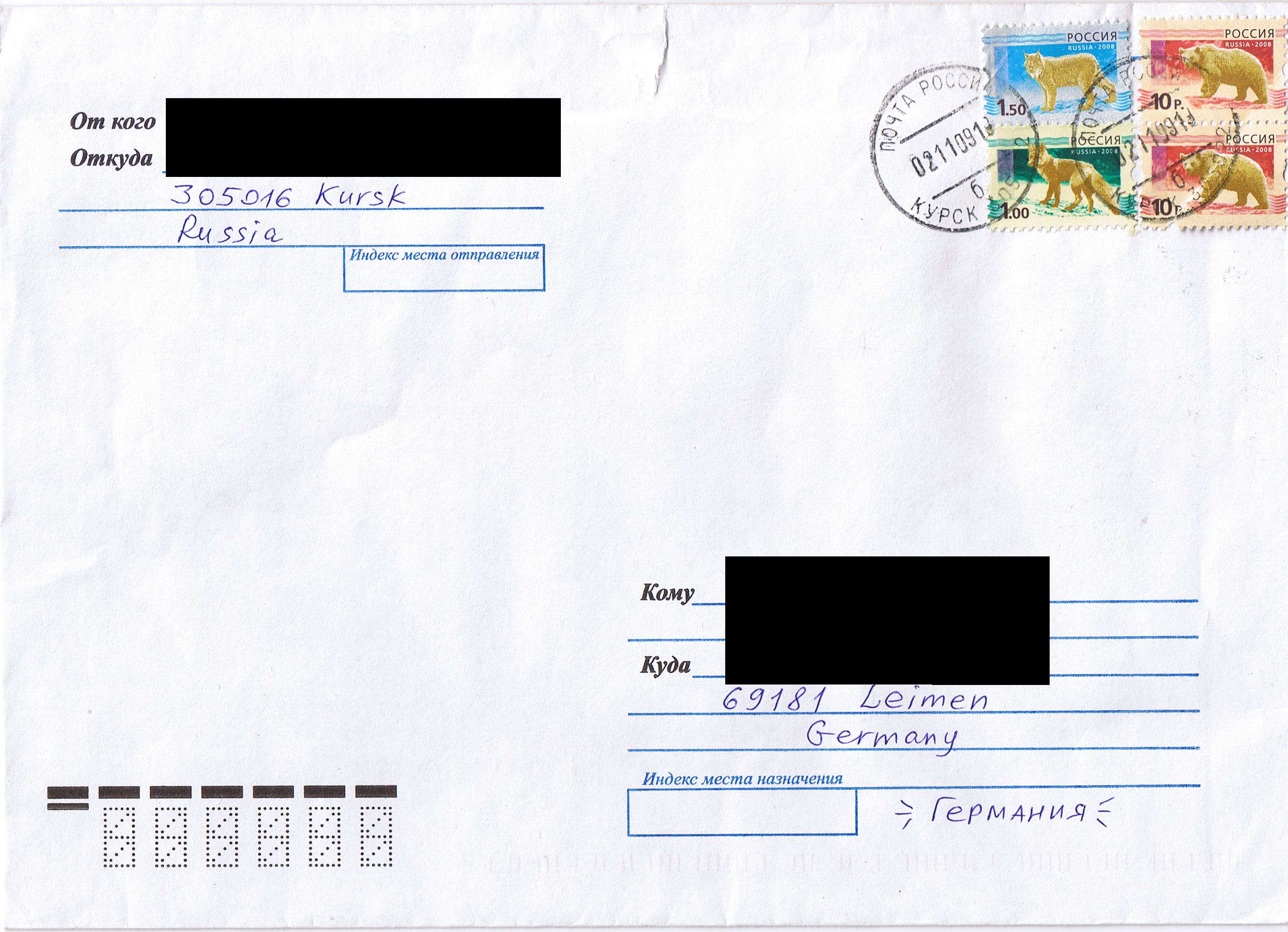 Beim ersten Versuch hat er die Marken exakt mit gleicher Umschlaggrösse und Frankatur versandt - das Ganze allerdings nicht von vorne geschützt.