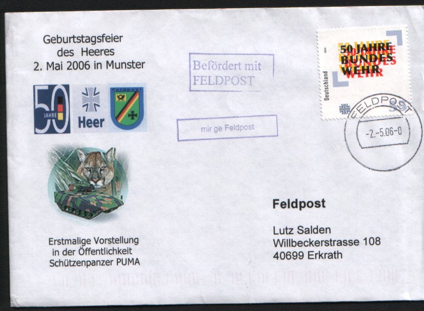 Hier ein Brief mit Feldpostsonderstempel vom Biwak aus Munster 50 Jahre Heer