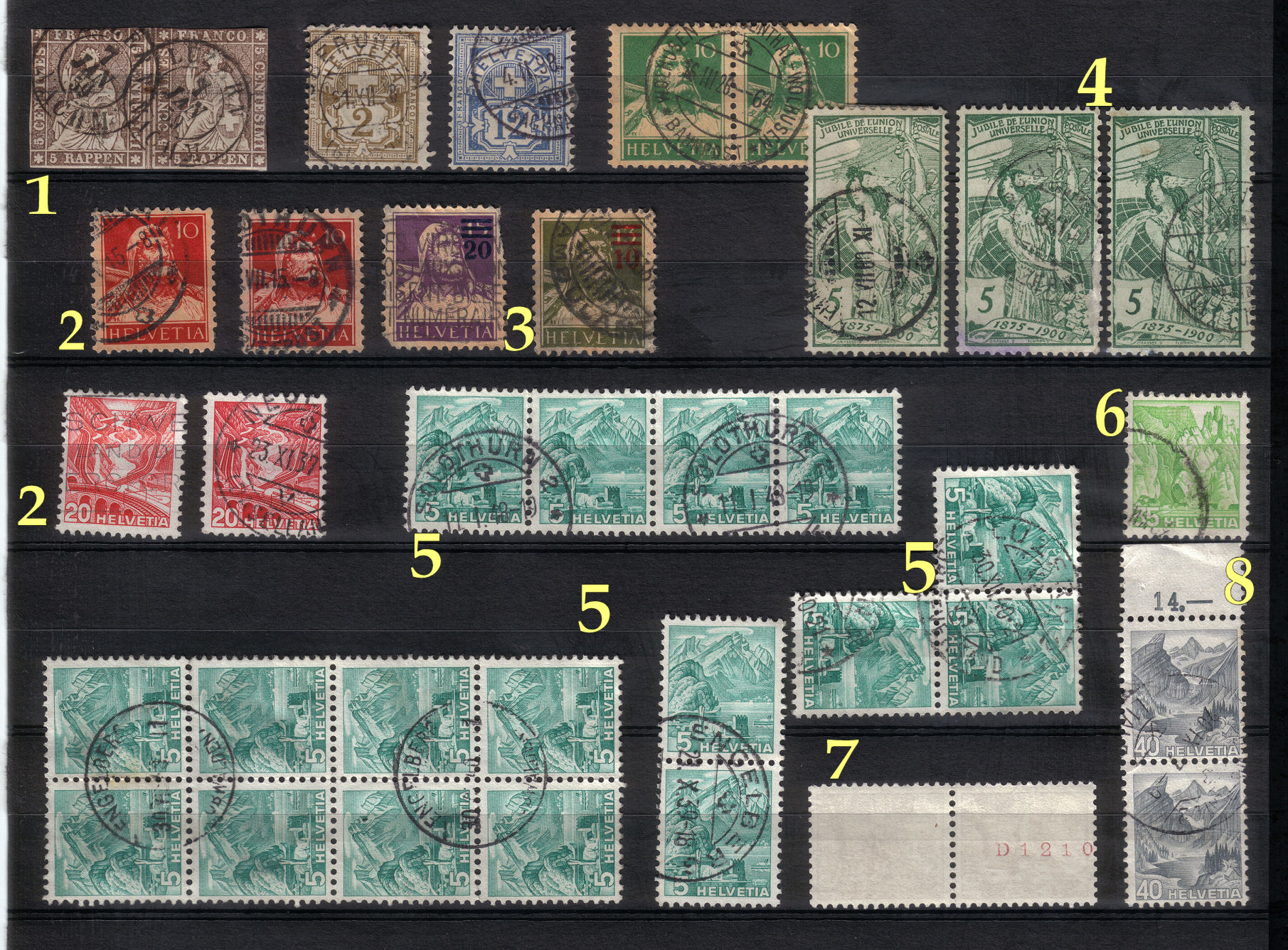 Deine Struvel auch wenn zu kurz geschnitten sehr schön , zusammenhängende Marken sammelt man oder auch nicht ich persönlich freue mich bei älteren Schweizern wenn ich Einheiten bekomme und stecke diese in ein separates Alben.