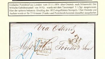 Porto 2½ Gr. für Brief in 1. Gewichtstufe. Frankiert mit ½ und 2 Groschen. Ankunftsstempel am 6.1.1873 in Manchester.