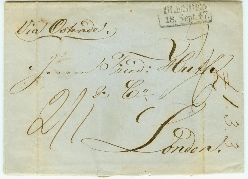 Schaue hier ein Brief von Dresden nach London via Ostende,am 18. 9. 1847, Ankunftsstempel in London am 23.9.1847.