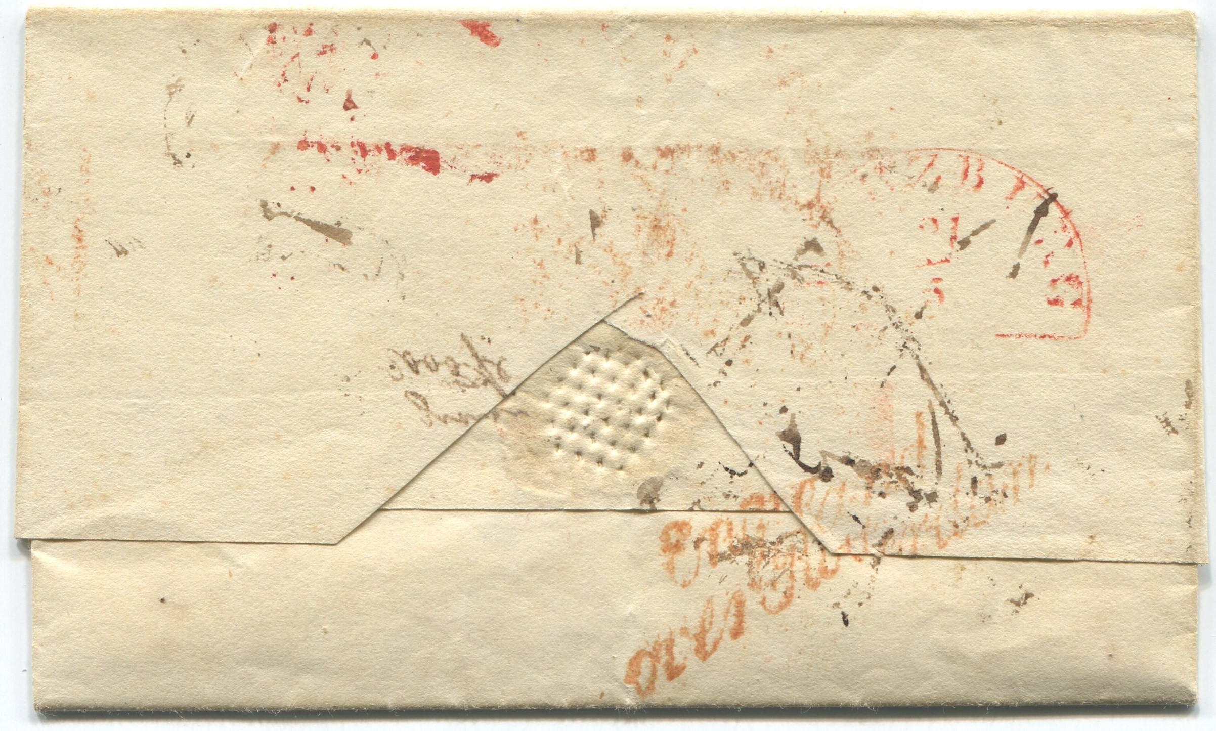 "via France"). Rückseite Durchgangsstempel