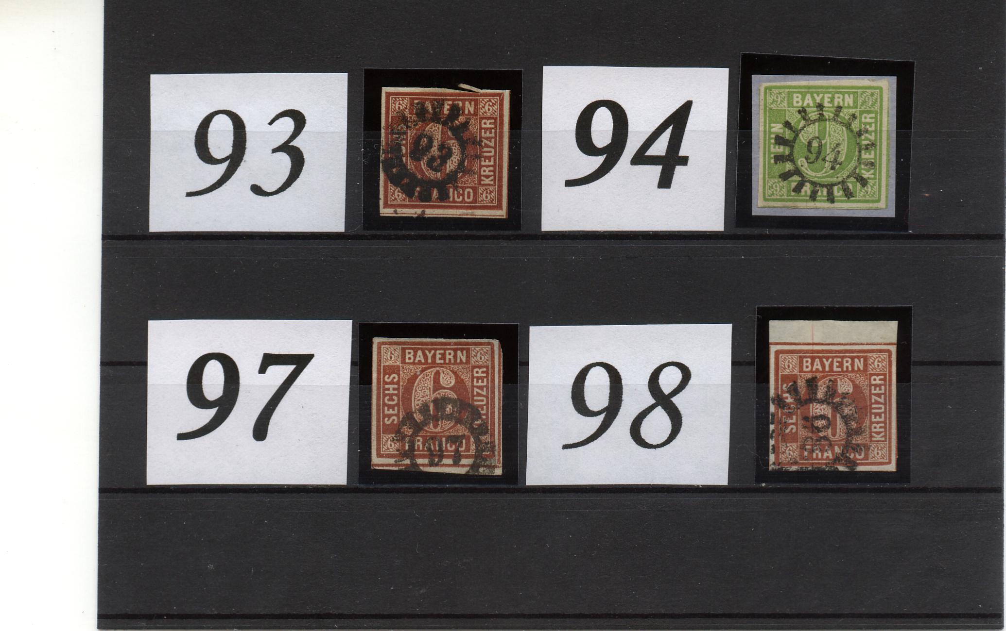 So, heute habe ich wieder ein paar Lücken gefunden, wo sich einige gelangweilte Einzelmarken befinden, und zwar GMr 93, 94, 97, 98 - und getreu dem Motto: packe zu den kleinen Altpapierschnipseln noch ein größeres Stück Altpapier dazu - diesmal ein Brief von Fürth nach Waldmünchen (Empfänger Ziegler Kreuzhütte) vom 3.9.1856.