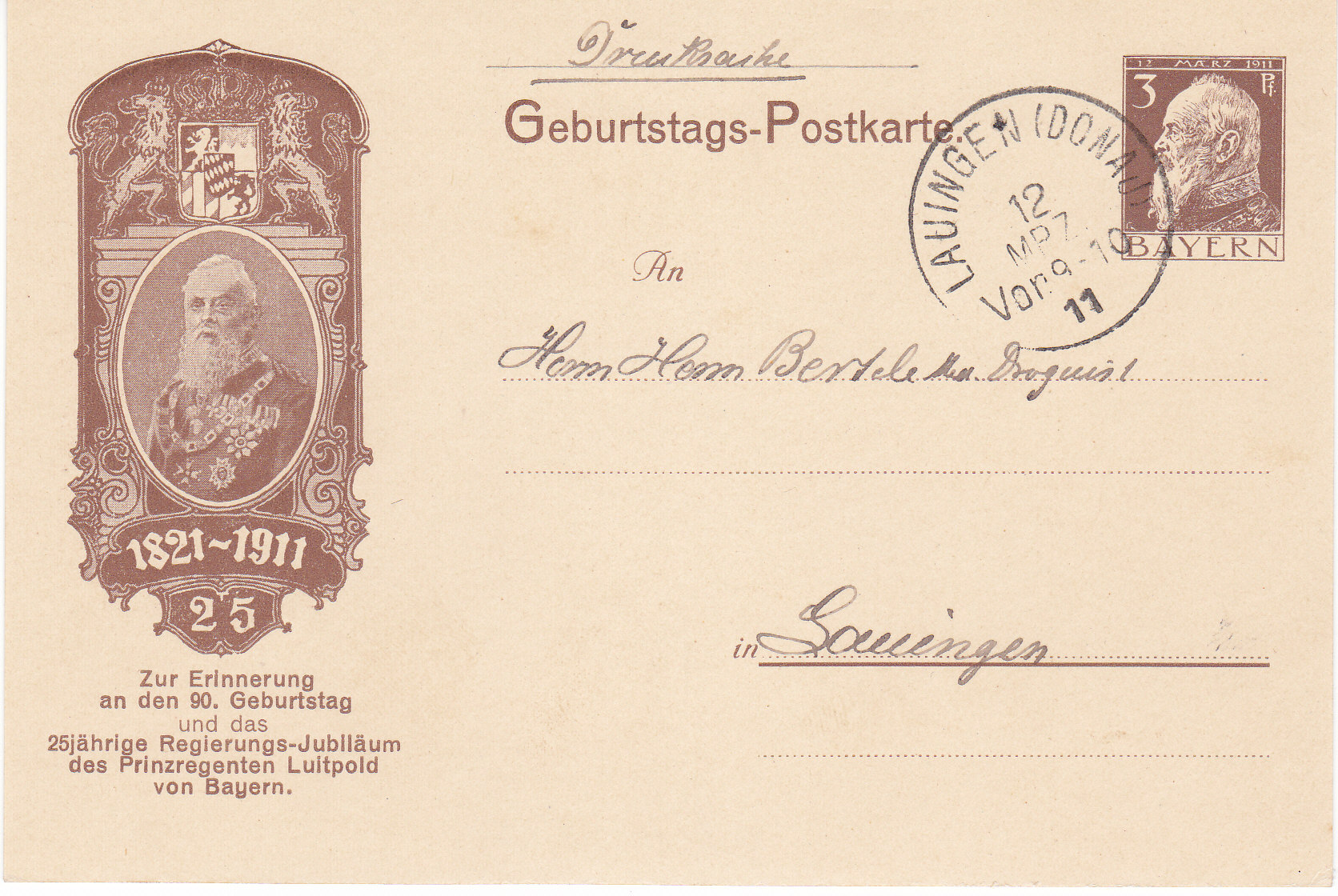 die Privatpostkarten zum 90. Geburtstag des Prinzregenten, gelaufen am 12.03.11