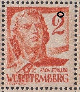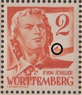 28 II Feld 86 Punkt in linker Kragenecke; Ü in Württemberg verstümmelt