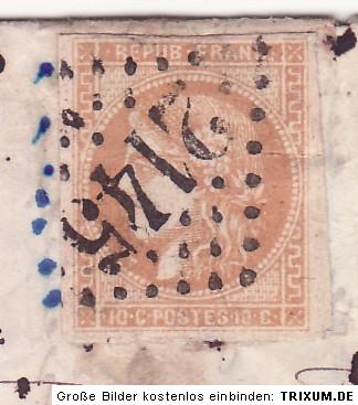 Aber wie blind, besser gierig muss jemand sein, der den gemalten Stempel(übergang) nicht erkennt?Wobei ich fairer Weise anmerken möchte, dass der Rest der angebotenen Frankreich-Briefe wohl echt ist.