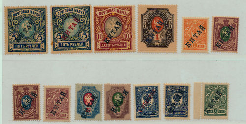 http://cgi.ebay.com/RUSSIA-CHINA-OLD-ONE-PAGE-MNH-MINT-COLLECTION-RARE-/170583435505?pt=LH_DefaultDomain_0&hash=item27b790a8f1gleicher Anbieter hatte vor einigen Tagen schon mal eine kleine Sammlung Russische Post in China angeboten. Auch hier waren die Aufdrucke falsch (siehe 2. Bild). Im Vergleich dazu echte, geprüfte Aufdrucke (Bild 3).