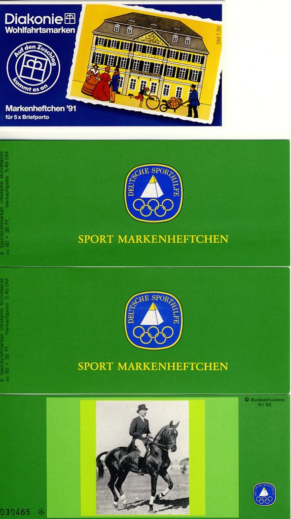 ich biete heute 3x Sport-MH mit dem im Michel katalogisierten Plf 1047 I und 1x das Wofa-MH von 1991 mit dem bei Schantl katalogiserten Plattenfehler 1567 f 5 A zum Postpreis von DM 23,70 = 11,50 € + Porto an.