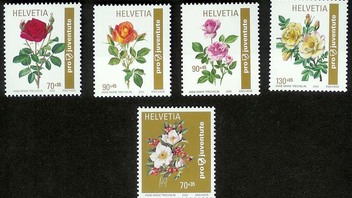 Dann am 19. November 2002 erschien auch die Ausgabe der Pro Juventute-Serie "Rosen" und eine Weihnachtsmarke "Christrose" (goldfarben, 2. Bild unten).
