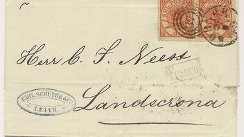 Frankatur recht banal Nr.37 Vorderseitig und ein waagerechtes Paar der Nr.48 Rückseitig verklebt. Einheitsporto für ein Paket nach Dänemark bis zum Gewicht von 5 kg = 80 Pfennig, selbiges x 3 = 240 Pfennig