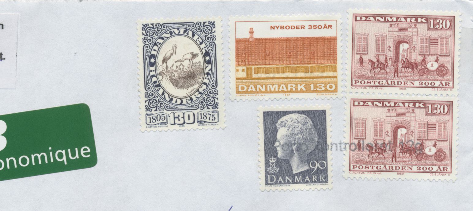 Der eine auch mit Poststempel weil der Mascine kennt der 50 øre Briefmarke.