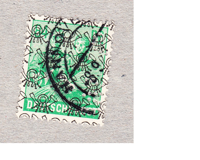 bin per Zufall auf die anghängte Marke gestoßen und Dank sachdienlicher Hinweise mittlerweile dahintergekommen dass es sich bei dieser Lochung um eine Firmenlochung der Firma Günther Wagner, Hannover (Handbuch Hohmann, Arge Kontrollrat) handelt.