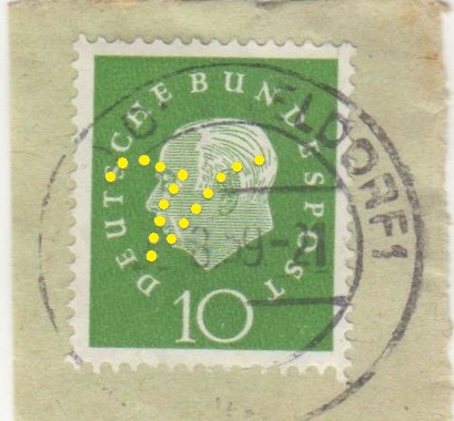 auf der 10Pfg Heuss ist diese Perfin (ähnlich DR Marke)