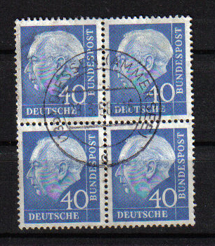 und als kleiner Höhepunkt ein waagerechtes Paar der Kat.-Nr. 191, Zähnung oben auf der rechten Marke verkürzt, 200,- M€ In den ersten Jahren der Deutschen Bundespost wurden vorhandene Stempel weiterverwendet, ein einheitliches Stempelbild gibt es erst nach Einführung der Postleitzahlen ab 23. 03. 1962