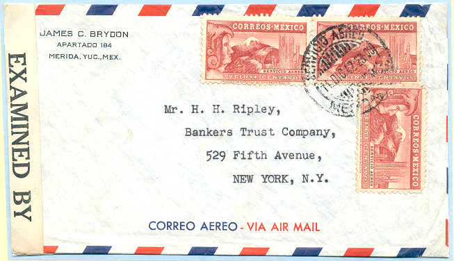 Zensierter Luftpostbrief von Merida nach New York vom 11.12.1942