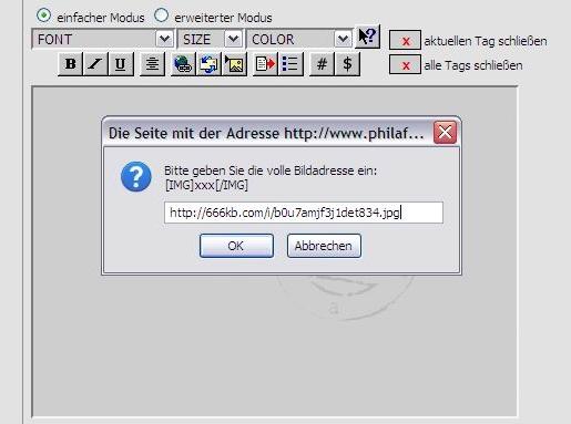 Bilder ins Philaforum hochladen und im Text anzeigen geht nicht.