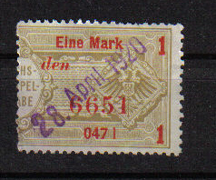 Wenn ich den auf dieser rechten Hälfte zu lesenden Eindruck richtig deute handelt es sich um eine Marke von 1 Mark "Reichs-Stempel-Abgabe", wie sie 1920 für Wertpapiere erhoben wurde!