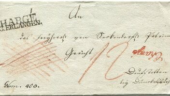 Es war ein Einfachen Brief und 1/2 Loth ist oben links notiert geworden. So kommen die Taxen. Warum haben die Preussen 1 + 6 = 7 gute Groschen gerechnet. Ab Saarbrücken bis wohin? Bayern hat für die Strecke durch Bayern 20 Kreuzer gerechnet (zuerst ist 25 Kreuzer notiert geworden, ist aber sofort in 20 korrigiert geworden). 20 Kreuzer ist nach Tarif von 1810 gleich 54-60 Meilen, gleich bis 450 Kilometer. Rothenburg nach Saarbrücken ist nicht mehr als 300 Kilometer. Es stimmt dann wahrscheinlich nicht dass es 1/2 Loth ist.