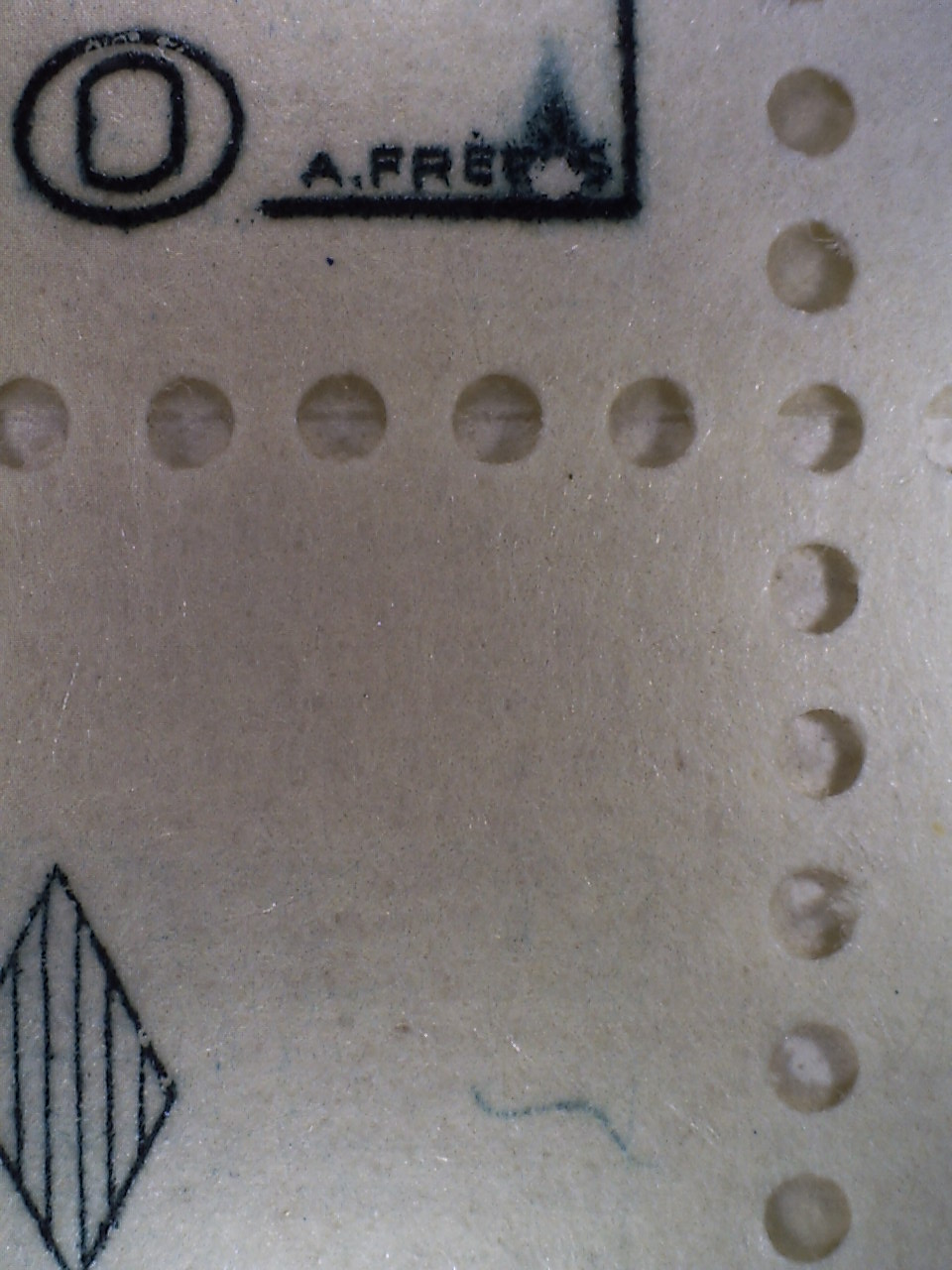 1 Strich im Bogenrandfeld über der 5. Marke und im Bogenrandfeld unter der letzten Marke