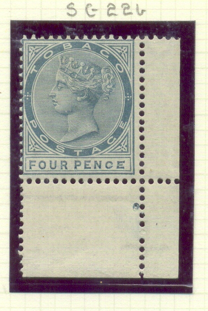 Der selbe Fehler ist auch auf die Marken St Christopher zu finden. Alle 4d. Marken sind bis 1900 heirvon betroffen. Feld 60. Eckrandstuck und Normal zum Vergleich.
