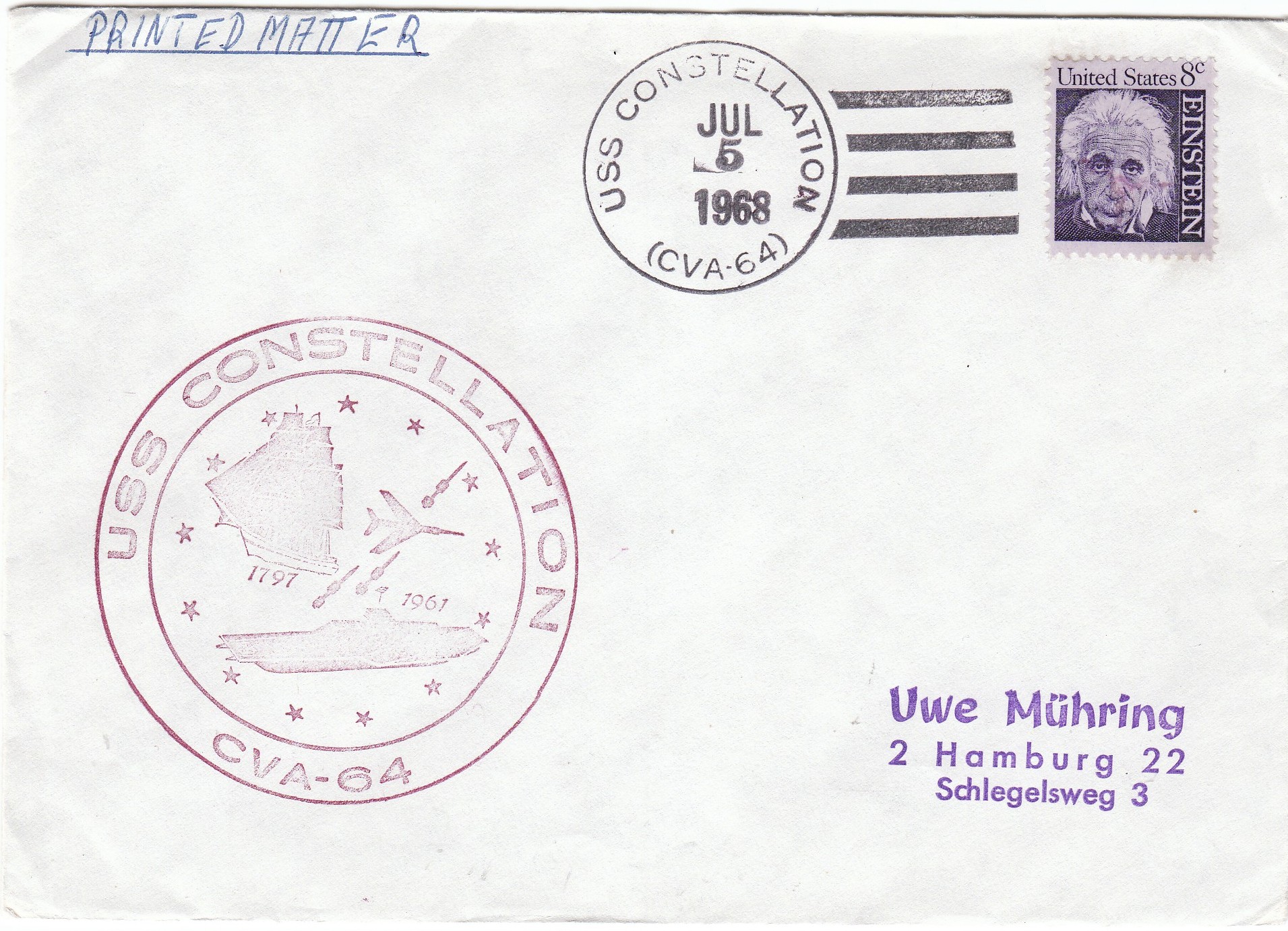 vielen Dank für die Information zu einer Marke zu meinem neuen Sammelgebiet. Die Marke zeigt die USS Hornet im Einsatz.