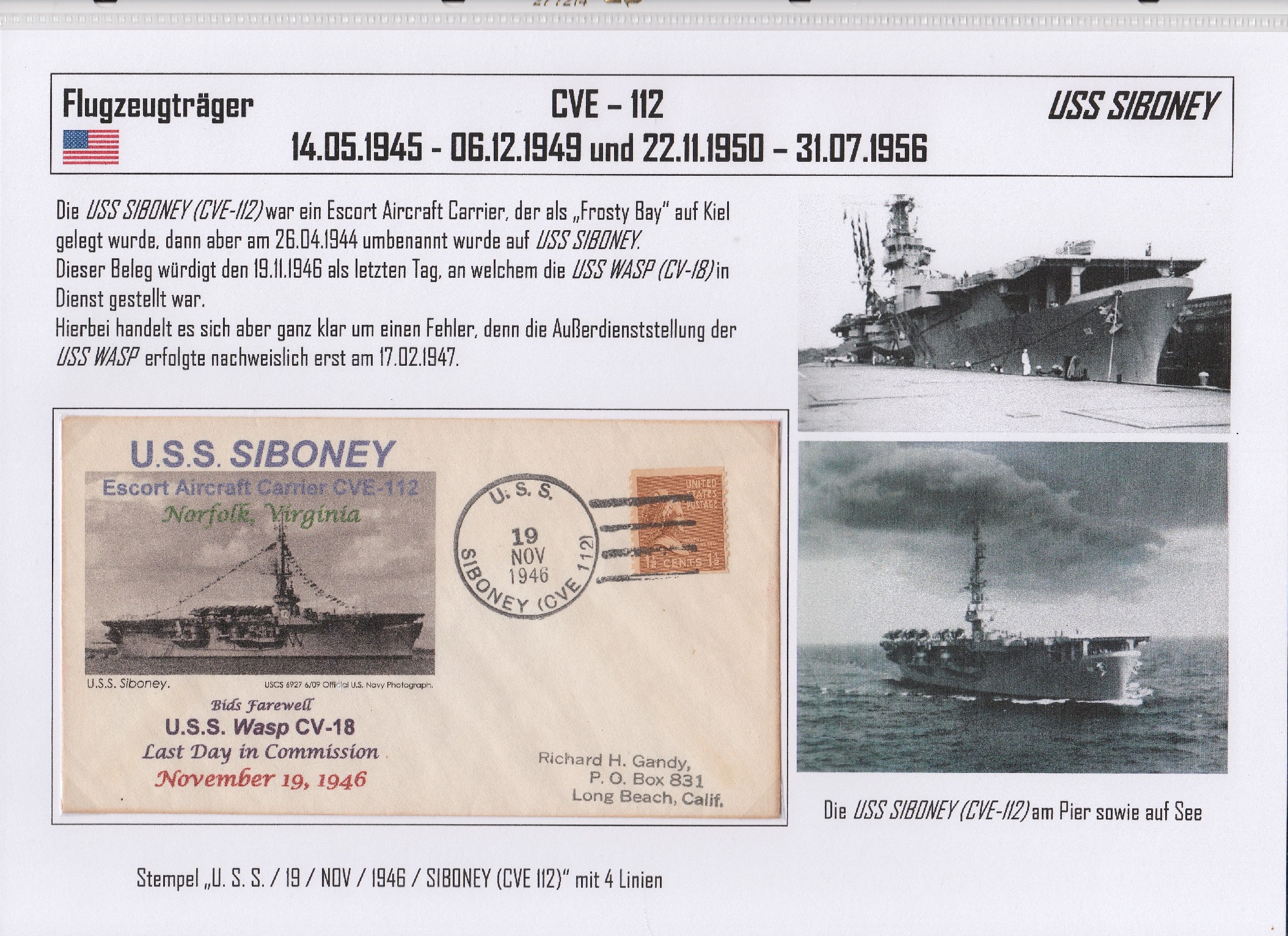 Hier ein Beleg der USS SIBONEY, CVE-112, aus der ersten Phase nach der Indienststellung!