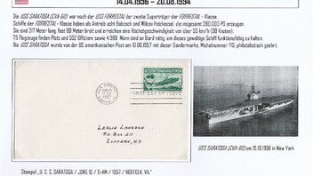 Dieser wurde mit einem Maschinenstempel des Flugzeugträgers USS SARATOGA am 10.06.1957 in NORFOLK, VA. (=Virginia) entwertet.
