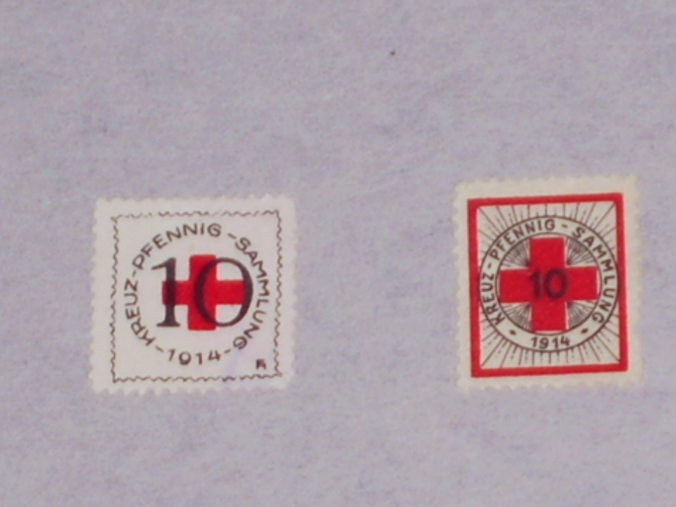 Als erstes handelt es sich um 2 Marken für eine Rot Kreuz Sammlung, sie tragen die Jahreszahl 1914 und hatten einen Wert von 10 Pfennige, und haben als Motiv das Rote Kreuz. Als zweites geht es um eine Marke der Königlich Bayer. Staatseienbahn, sie trägt das Bayrische Wappen und hatte einen Wert von 25 Pfennigen. Leider habe ich zu diesen Marken nirgendwo was gefunden, ich hoffe ihr könnt mir weiterhelfen.