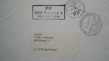 habe folgenden Brief schon länger in meiner Sammlung, bin aber etwas Ratlos... Zwei Stempel, der eine wurde durchgestrichen und anschließend mit dem anderen abgestempelt. Wurde hier noch eine Nachgebühr erhoben? Auf der Rückseite des Briefes befindet sich keine Vermerk. Steht das PP für Porto Paid?