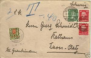 Wichtig ist nun noch das Auslandsbriefporto der Schweiz zum jeweiligen Zeitpunkt. Das waren zu beiden Zeitpunkten 25 Rp.