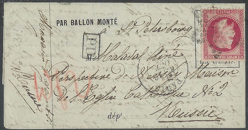 Brief nach St.Petersburg/Russland,abgestempelt am 26.10.1870,4.Leerung,
