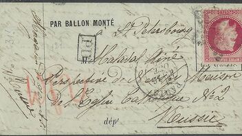 befördert mit Ballon" Le Denis Papin" oder L'Armee de Bretagne"-die 2 Ballone steigen am gleichen Tag am 07.12.1870 innerhalb 5 Stunden auf...