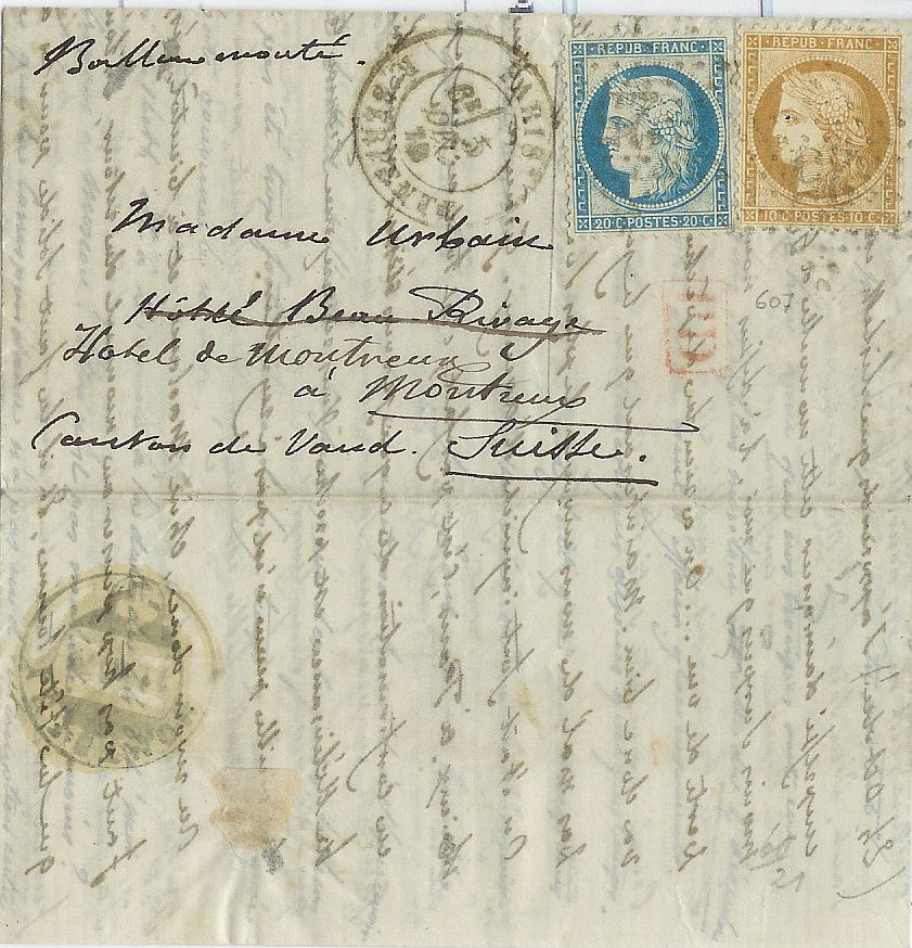 Brief nach Montreux,abgestempelt am 05.12.1870,6.Leerung
