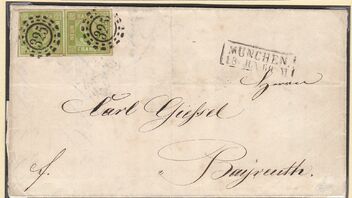 Ein Ortsbrief aus München mit 2Kr-Frankatur. Da der Brief nach dem 1.8.1865 abgeschickt wurde kann man leider nicht sicher sagen wie schwer er wirklich war. Irgendwas zwischen mehr als einem und 15 Loth müssen es gewesen sein.