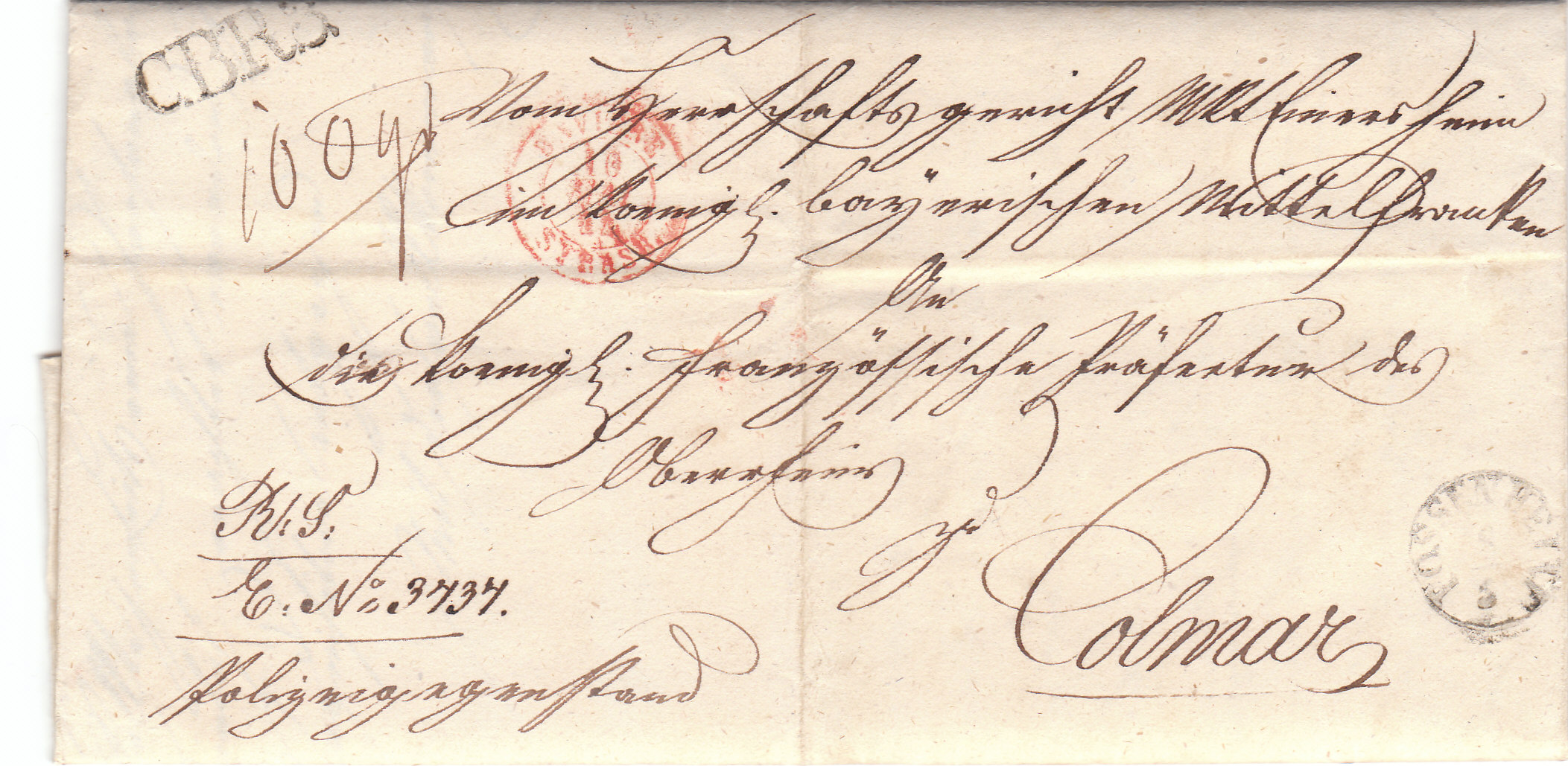 Anekdote am Rande: Der C.B.R.3 - Stempel war nur auf Portobriefen abzuschlagen. Daher wog man den Brief überhaupt erst in Strasbourg ab. Erst als man feststellte, dass es ein portofreier Brief war, ließ man von einer möglichen Taxierung ab. Hätte die Niete in Possenheim ihn nicht abgeschlagen, wüssten wir über sein damaliges Gewicht nichts.