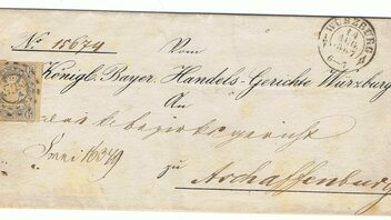 Der Absender (Kgl. bay. Handels-Gericht Würzburg) ist vorgedruckt. Leider hat der Brief keinen Inhalt mehr.Viele Grüße